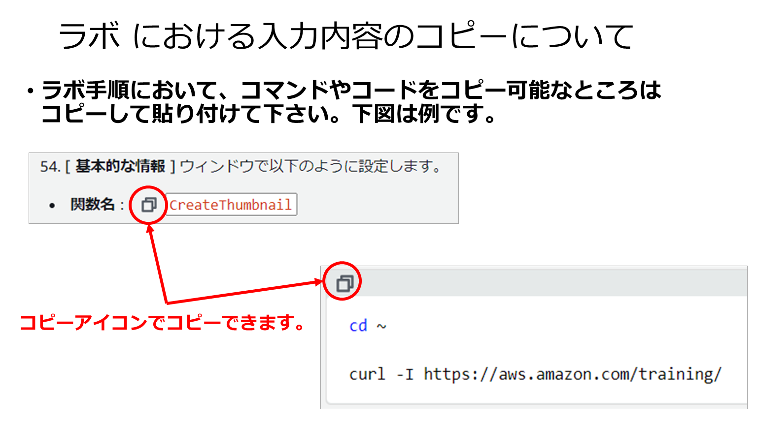 - 同時に起動できるラボは3つまで、同時に並行して使用できるラボは2つまでですので、ご注意ください。(他のAWSトレーニングのラボも含めます。)